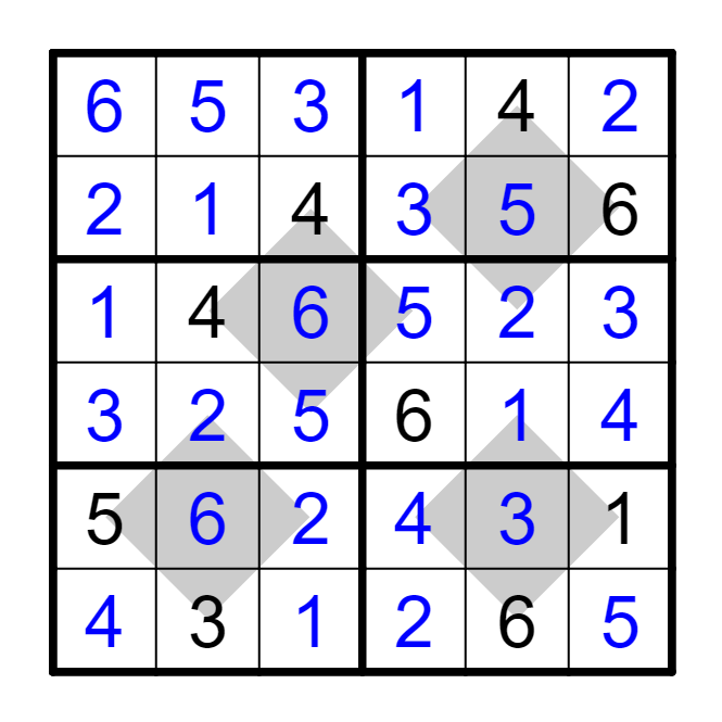 标准数独基础上,钻石中间的格是四角之和的因数。