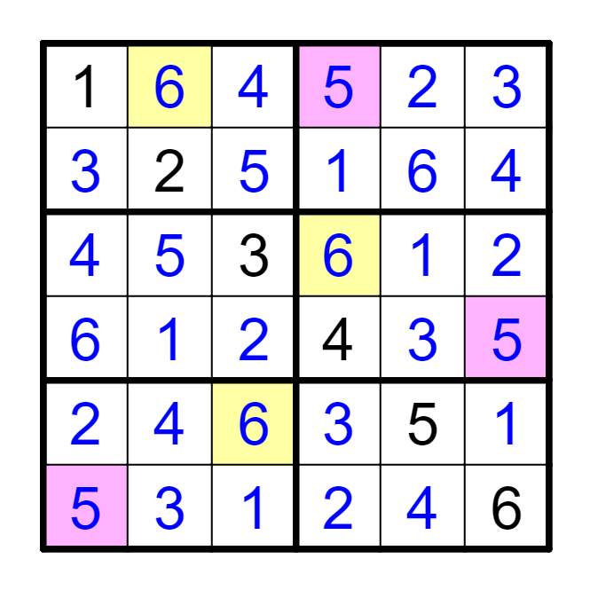 标准数独基础上,相同颜色的格里包含了相同数字。