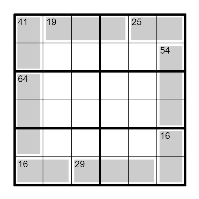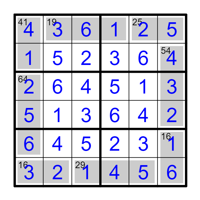 标准数独基础上,提示是其区域中多位数的因数。所有多位数都是从左到右、从上到下阅读形成的。