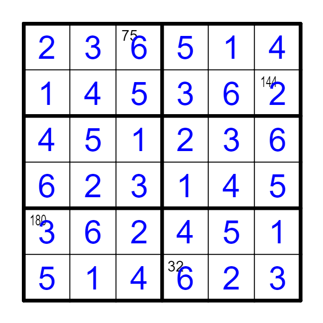 标准数独基础上,提示表示其所在格所有相邻格的乘积。