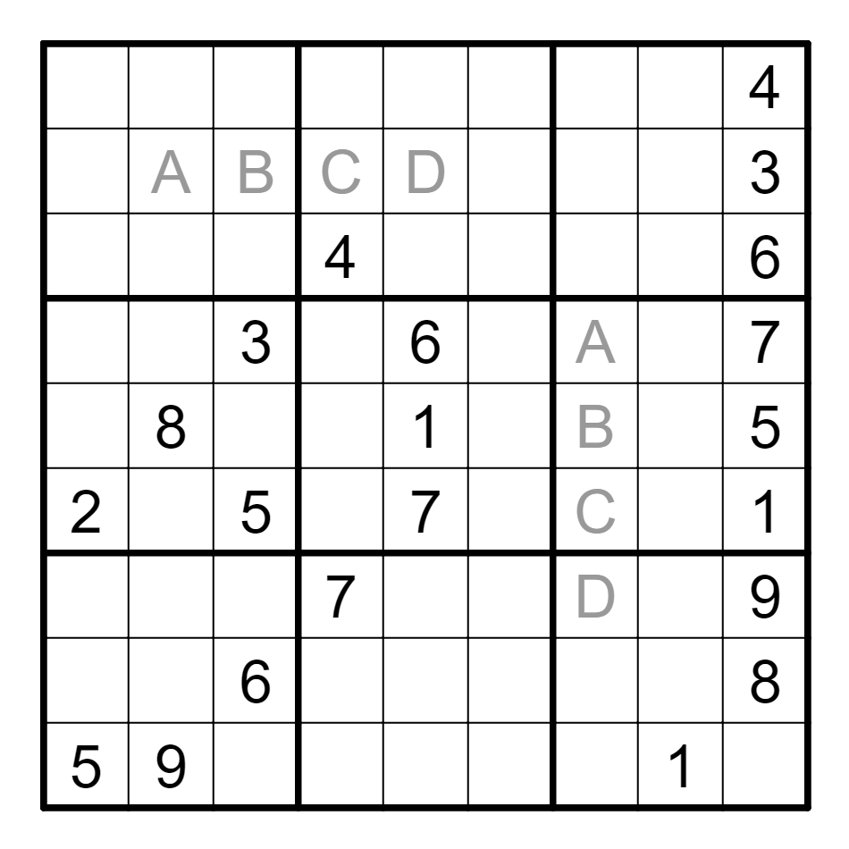 标准数独基础上,相同字母表示相同数字,不同字母表示不同数字。