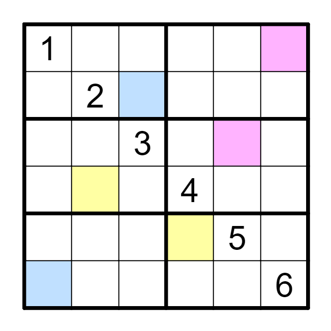 标准数独基础上,相同颜色的格子里有相同的数字。
