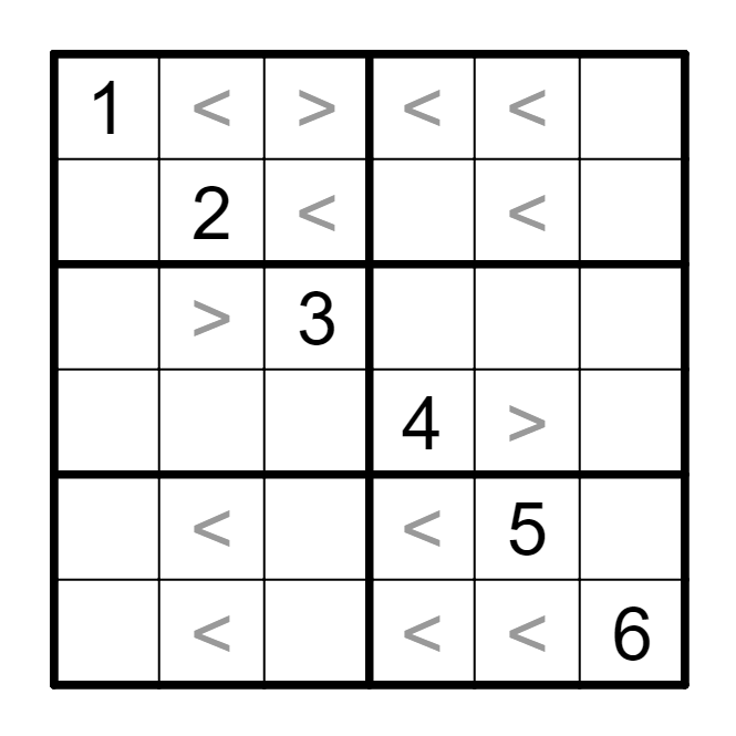 标准数独基础上,某一个数字是标杆。有>的格子内的数字比标杆大,有<的格子内的数字比标杆小。