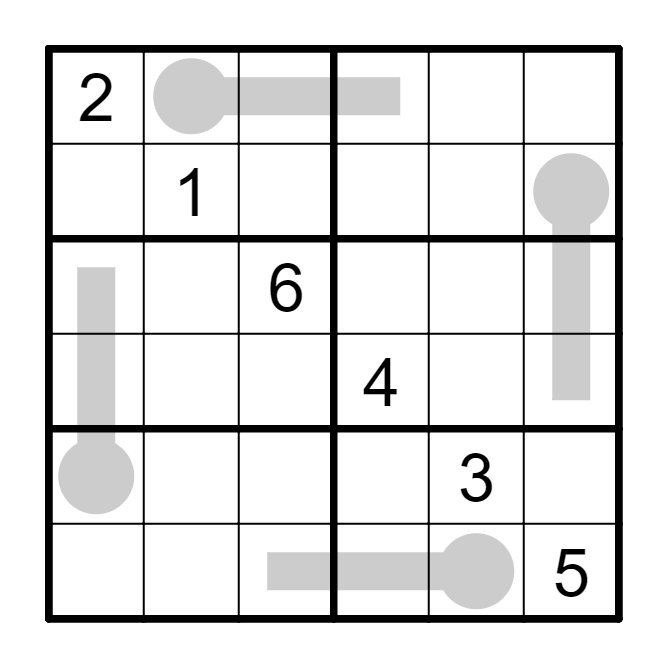 标准数独基础上,数字从圆球开始沿着线条逐渐增大。