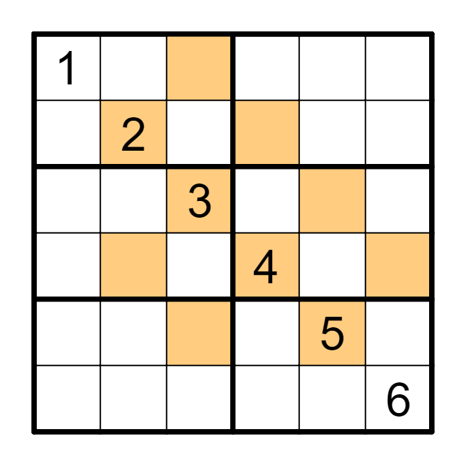 标准数独基础上,涂色的单元格组成了若干个三角形(上方一格,下方两格)。每一个三角形结构中,顶端的数字是下方两个数字的和或差。