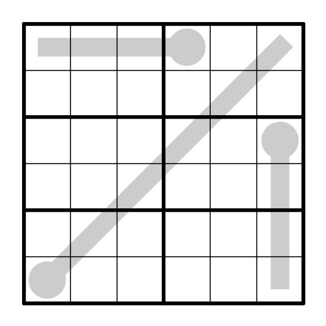 标准数独基础上,数字从圆球开始沿着线条逐渐增大。