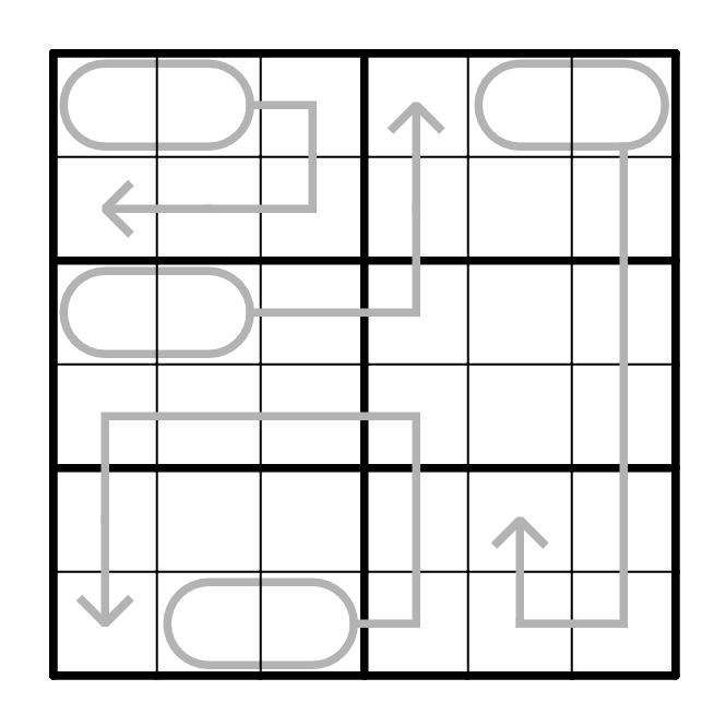 标准数独基础上,每条箭头上的数字之和,等于圆圈里的一位或两位数。两位数的阅读方式是从左到右、从上到下。