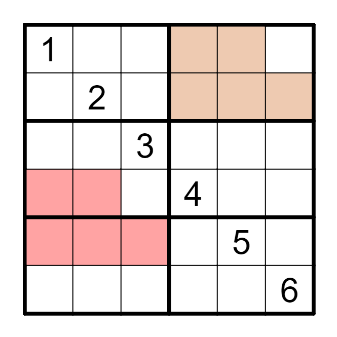 标准数独基础上,两个涂色区域内,相同的位置数字之差为1。