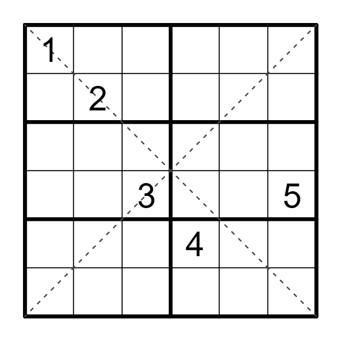 Classic rules applied. Additionally, numbers cannot repeat on each diagonal.