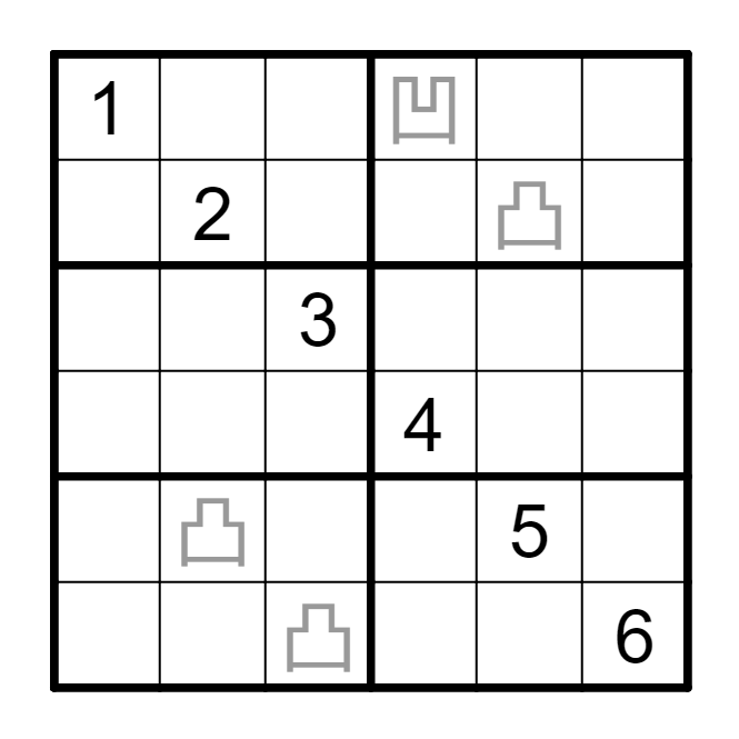 标准数独基础上,“凸”字格内数字大于其相邻单元格内数字,“凹”字格内数字小于其相邻单元格内数字。