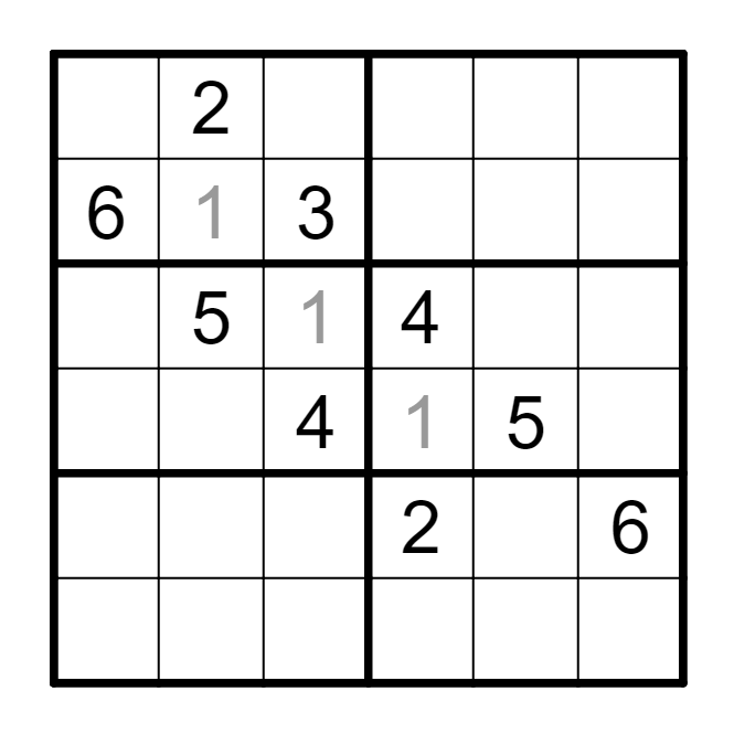标准数独基础上,灰色数字有且仅有一个是错误的。