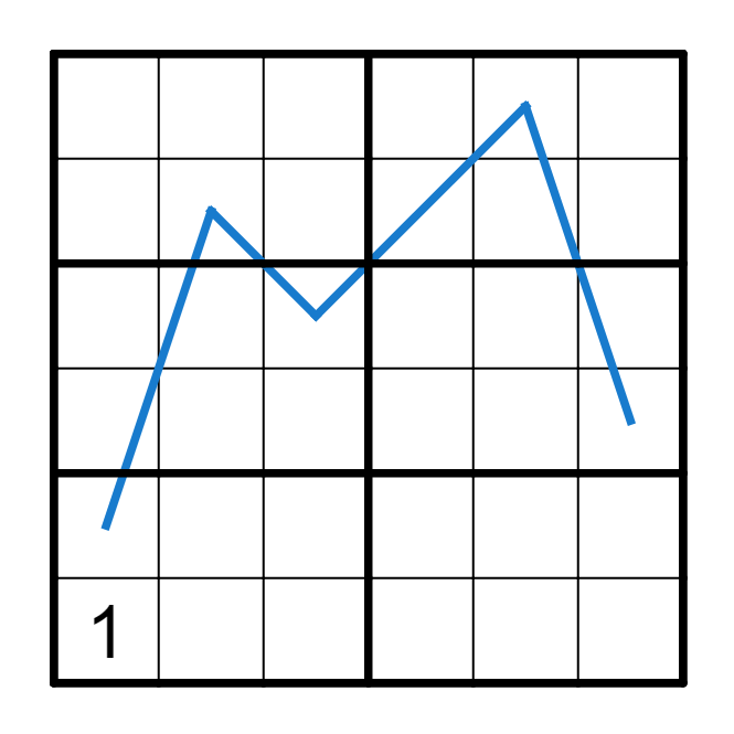 标准数独基础上,沿着线条向上时,数字会逐渐增大;沿着线条向下时,数字会逐渐减小。