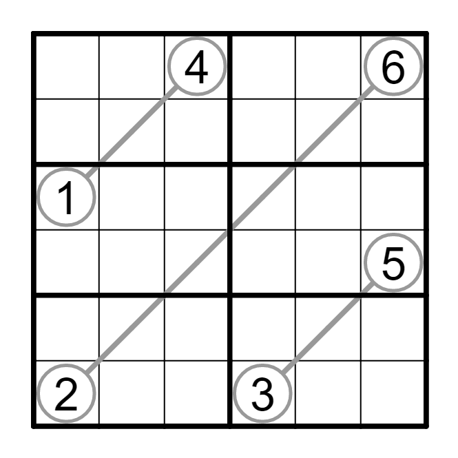 标准数独基础上,线条上的数字,其大小位于线两端圆圈内数字大小之间。
