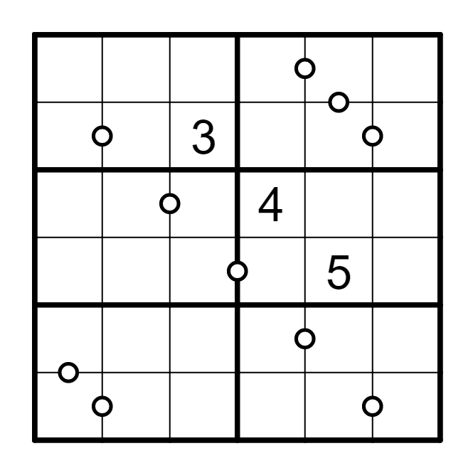 Classic rules applied. Additionally, the white dot means the adjacent two cells around it are consecutive.