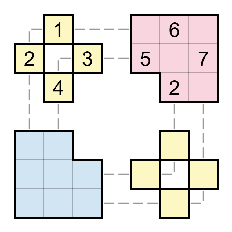 填入1~8,使得每行、列和每个管道上数字都不重复。