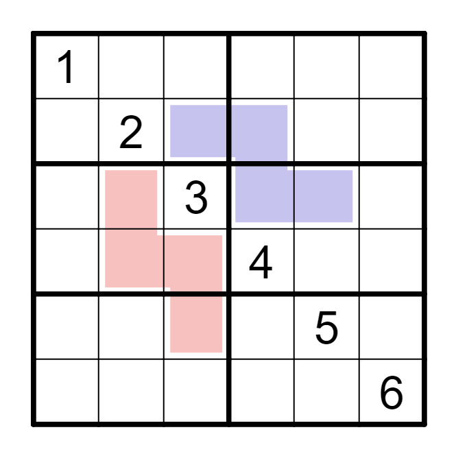 标准数独基础上,每个灰色区域中,所有奇数的和等于所有偶数的和。