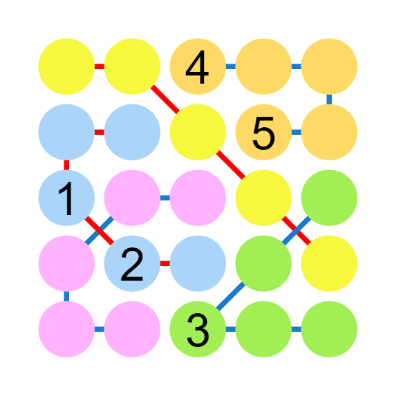 填入1~5,使得每行、列,以及一组由线条串联的区域内数字不重复。