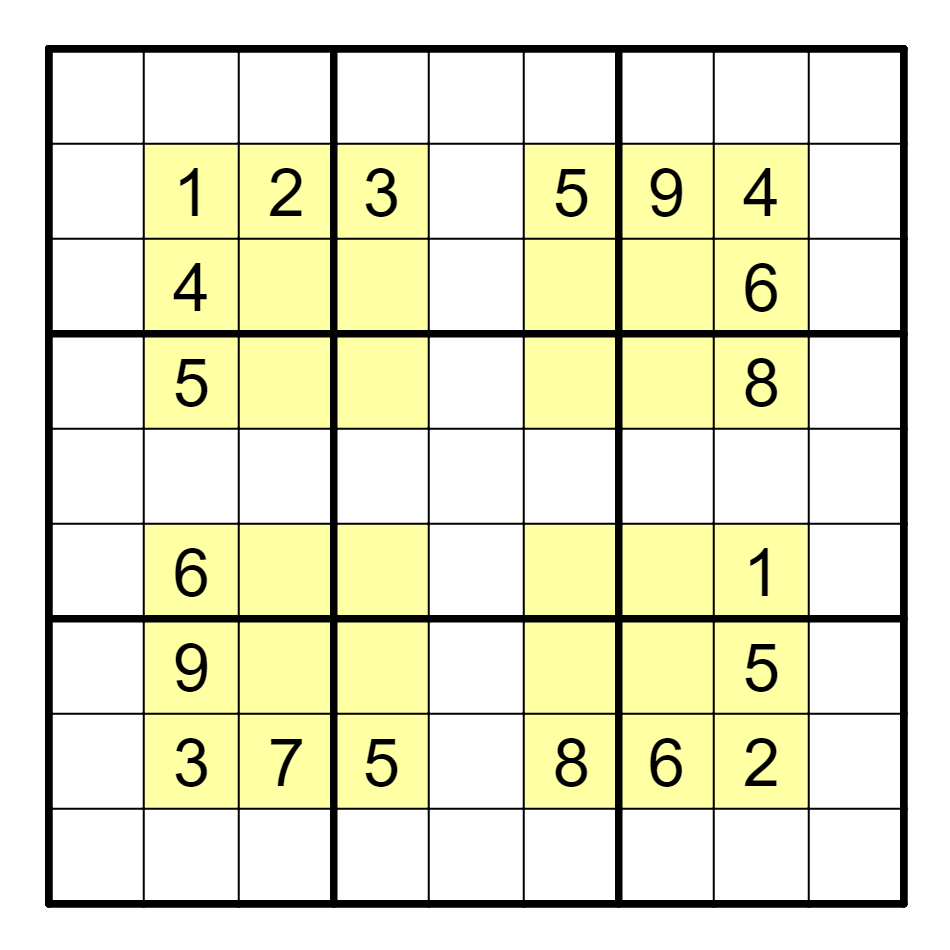 标准数独基础上,每个涂色区域中的数字不重复。