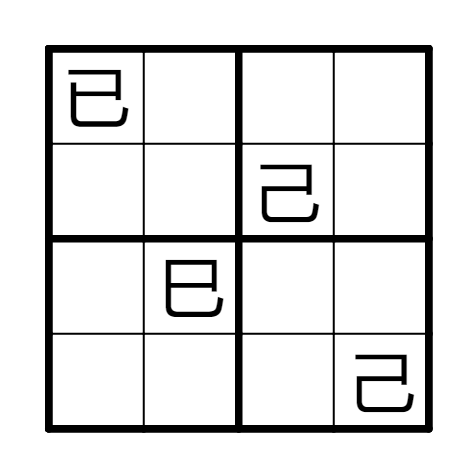 填入已、己、巳,使得每行列宫内都是一个已、两个己、一个巳。