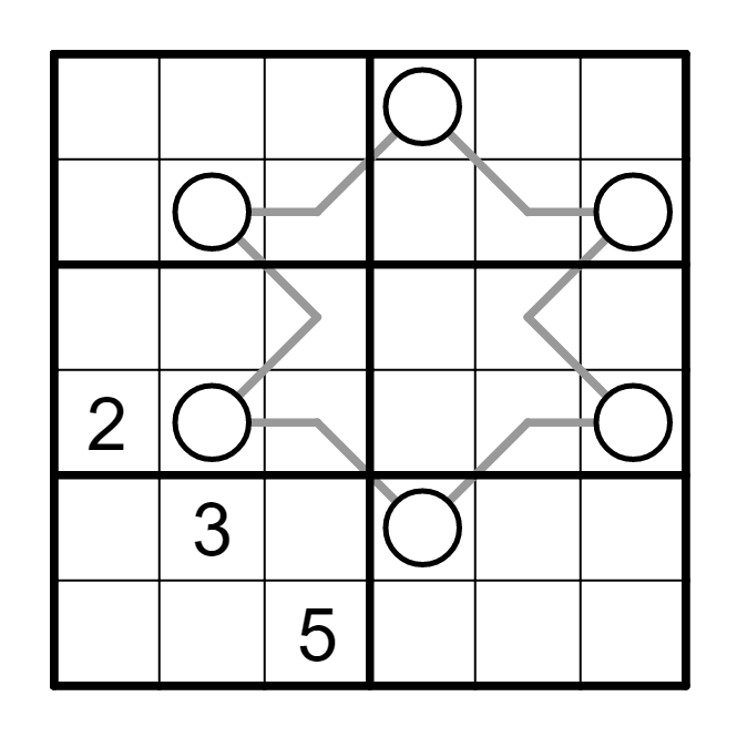 标准数独基础上,线条上的数字,其大小位于线两端圆圈内数字大小之间。