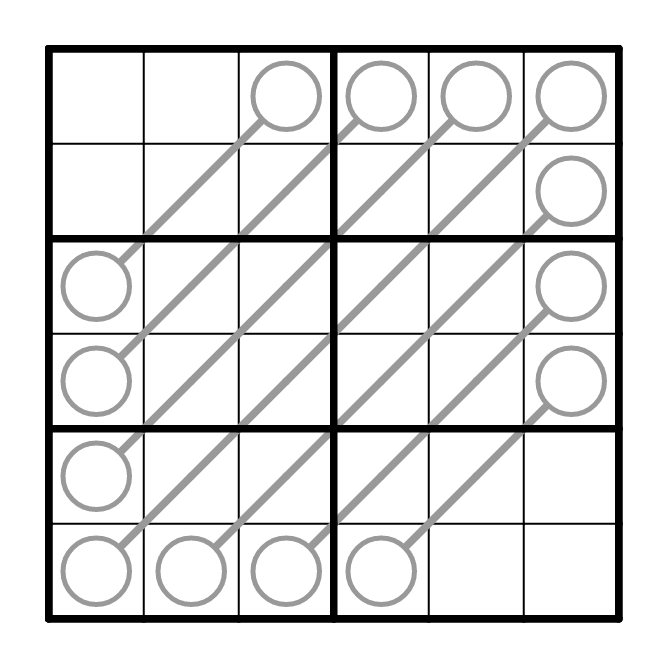 标准数独基础上,每条线条上的数字之和等于两侧圆圈里的数字之和。