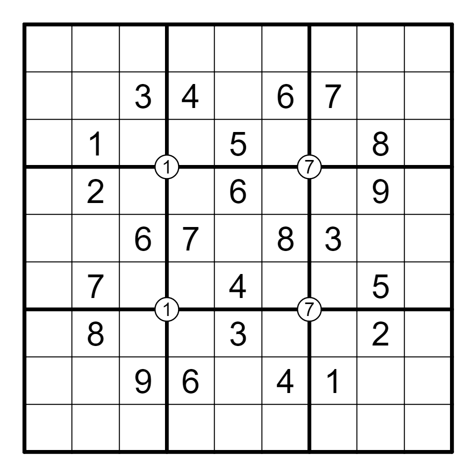 标准数独基础上,提示A的周围数字中,任意两个数字的差不是A。