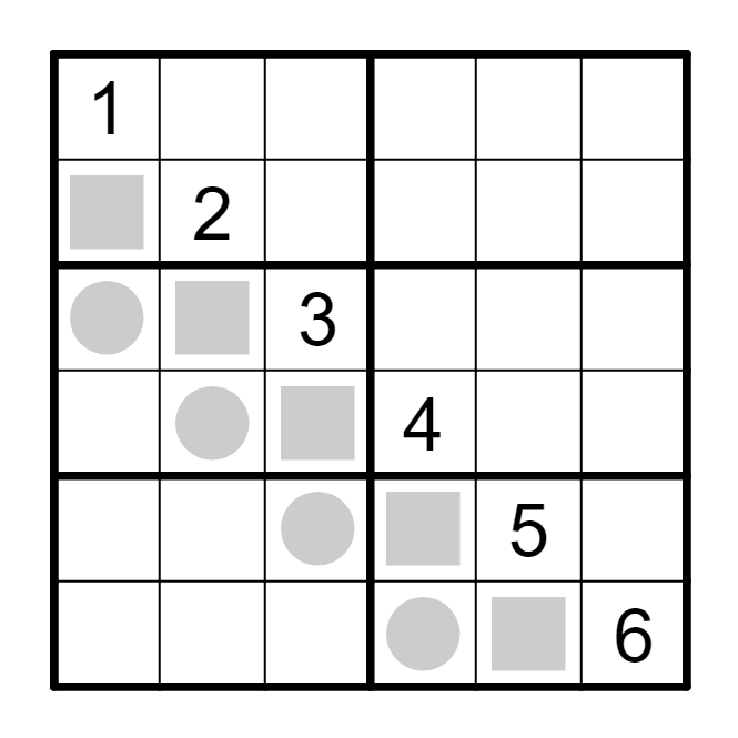 标准数独基础上,圆圈格子填奇数,方块格子填偶数。