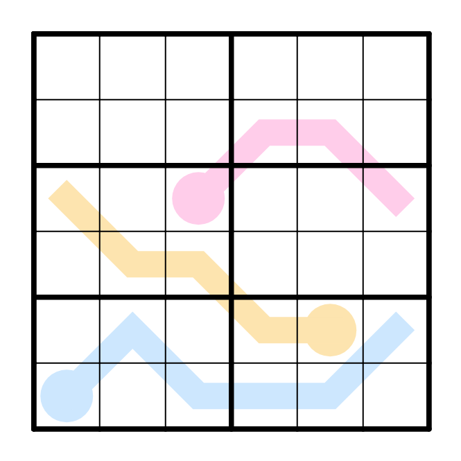 标准数独基础上,数字从圆球开始沿着线条逐渐增大。