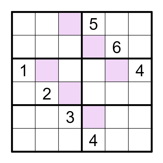 Classic rules applied. Additionally, numbers 1~6 cannot repeat in each colored region.