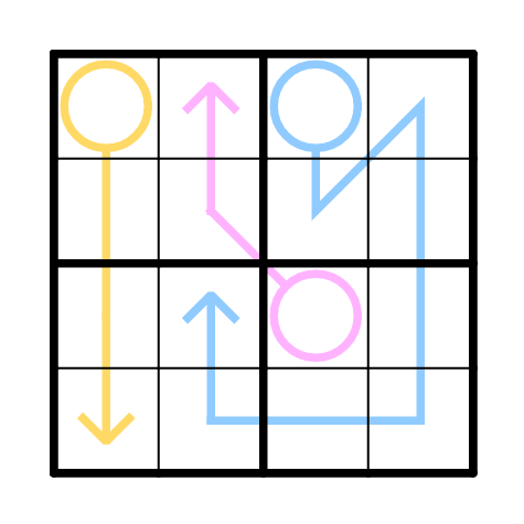 标准数独基础上,如果圆圈格子是A,则线条上有A个数字比A大。