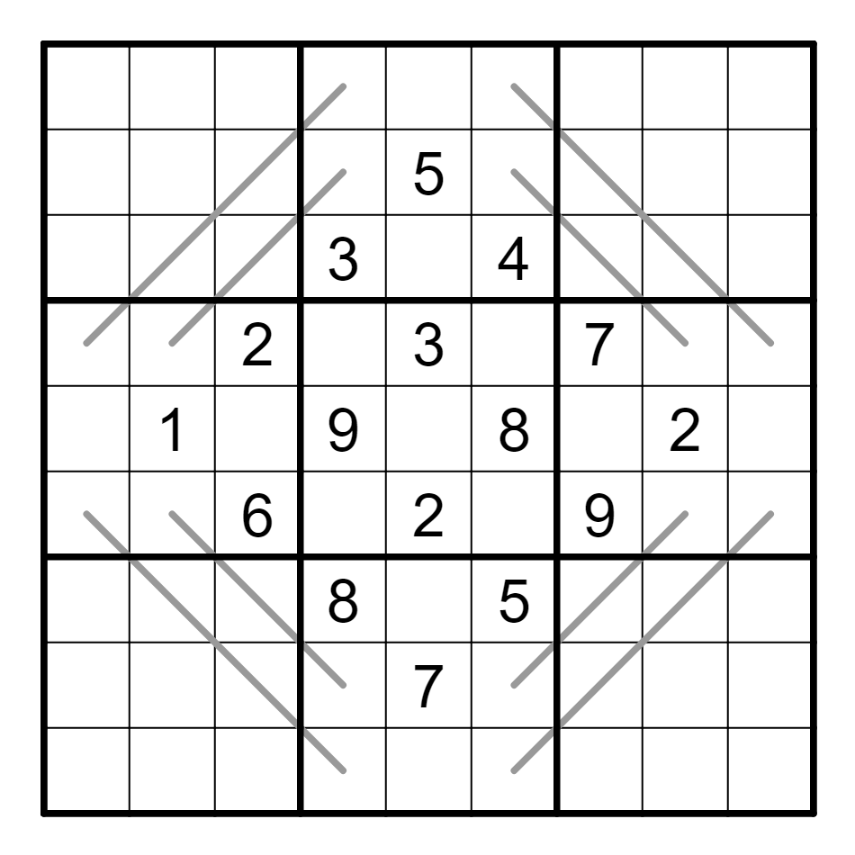 标准数独基础上,每条线上的数字按顺序从一端到另一端是一组等差数列。