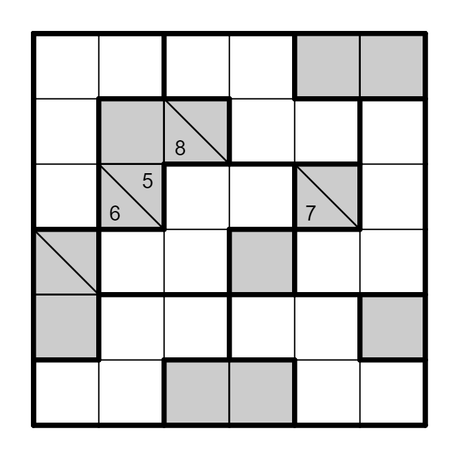 填入1~4,使得每行、列、宫内数字不重复。提示表示这一段连续白格内数字的和。